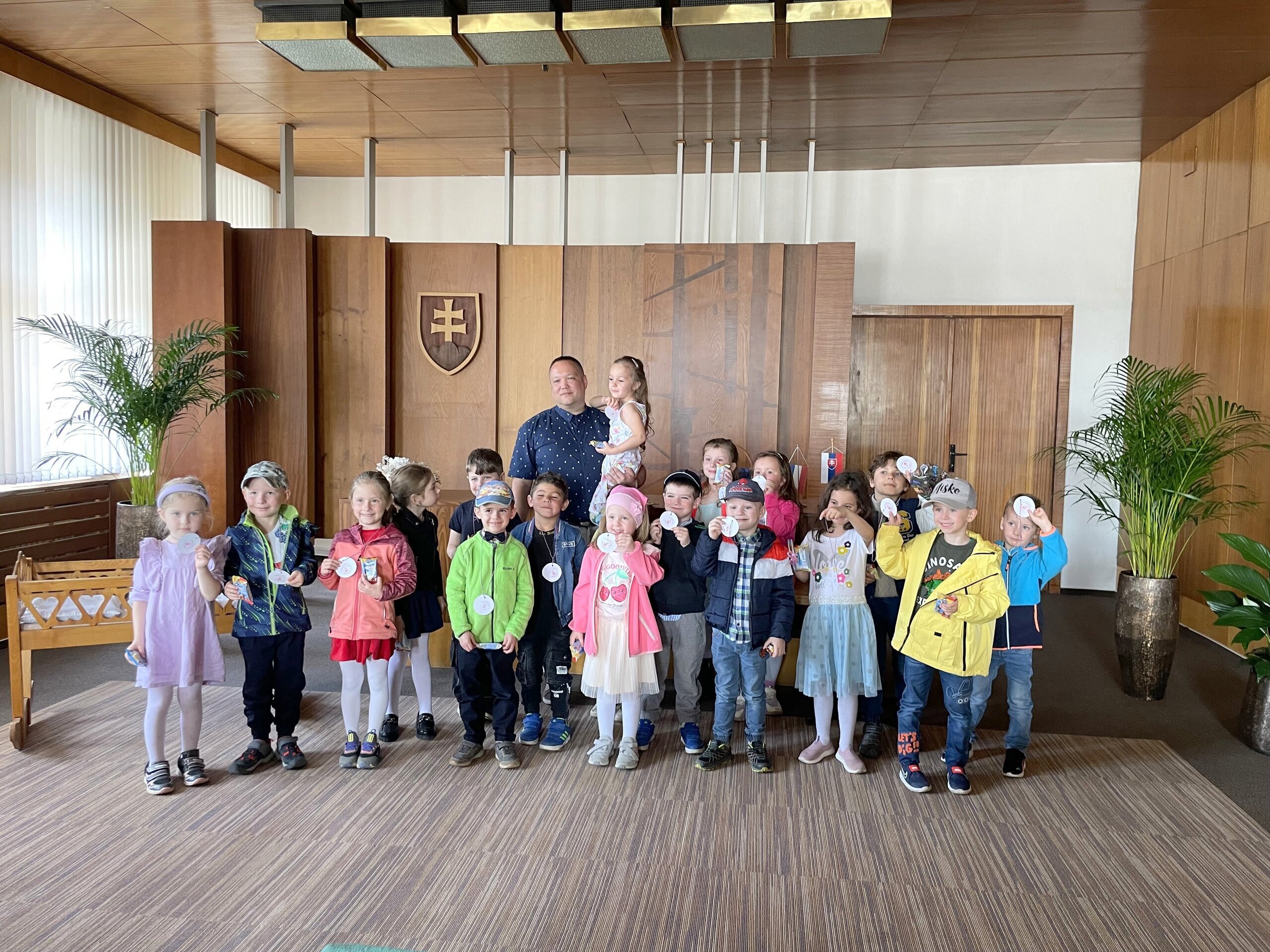V rámci témy týždňa" ...Rodným mestom..." sa škôlkári zúčastnili exkurzii na Mestskom úrade v Brezne. Prijal nás p. viceprimátor Ing. Miroslav Fašang. Na mestskom úrade nás prijali v obradnej sieni, kde si deti samy vyrobili medaile s pečaťou Brezna.