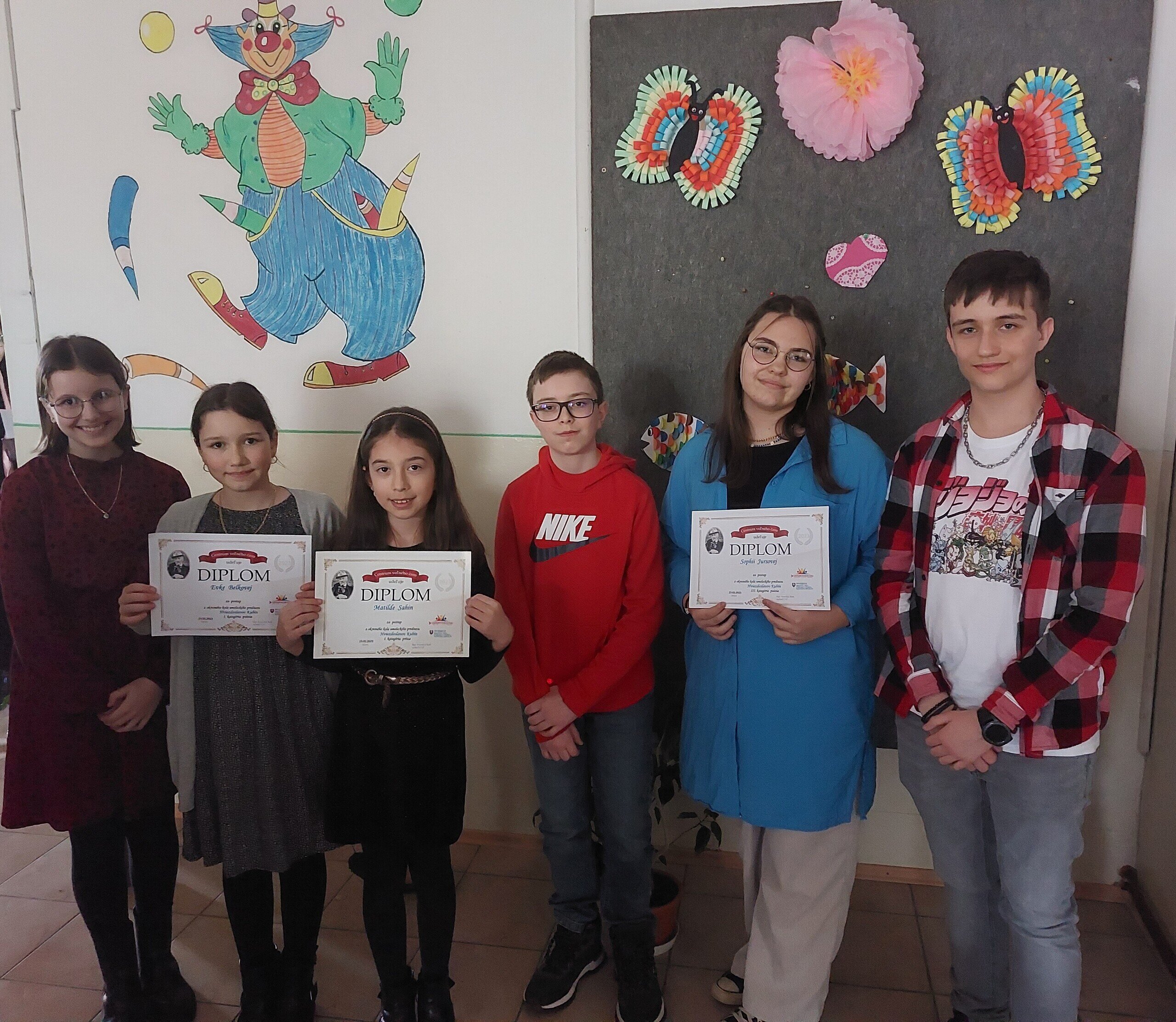 Dňa 23.02.2023 našu školu reprezentovali šiesti recitátori v okresnom kole „Hviezdoslavov Kubín“. Všetci títo milovníci umeleckého prednesu podali vynikajúce výkony, pričom postupujúcimi sa stali Matidla Sahin a Eva Belková zo 4.A a Sophie Boženka Jursová z 9.A. Postupujúcim srdečne gratulujeme a všetkým ďakujeme za výbornú reprezentáciu našej školy.