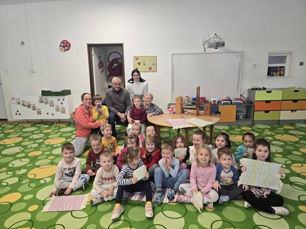 V utorok k nám zavítali manželia Olinka a Jožko Danovci z Čierneho Balogu. Deti spoznali malé krosná, naučili sa pomenovať ich časti a vyskúšali si jednoduché tkanie. Prezreli si aj hotové pokrovce, obrusy a podložky a na záver sa spoločne odfotili.
